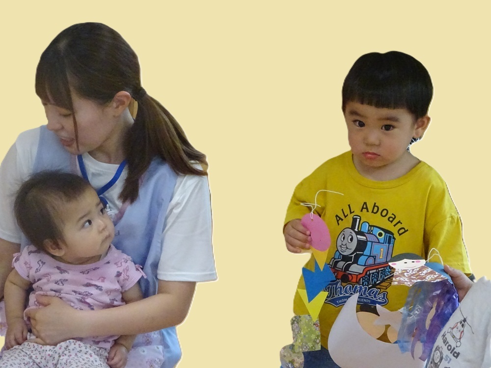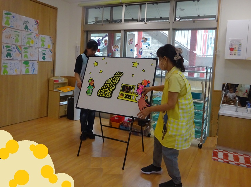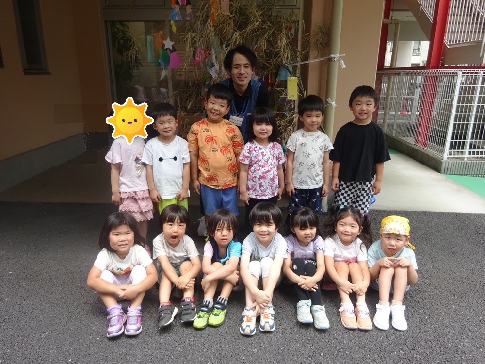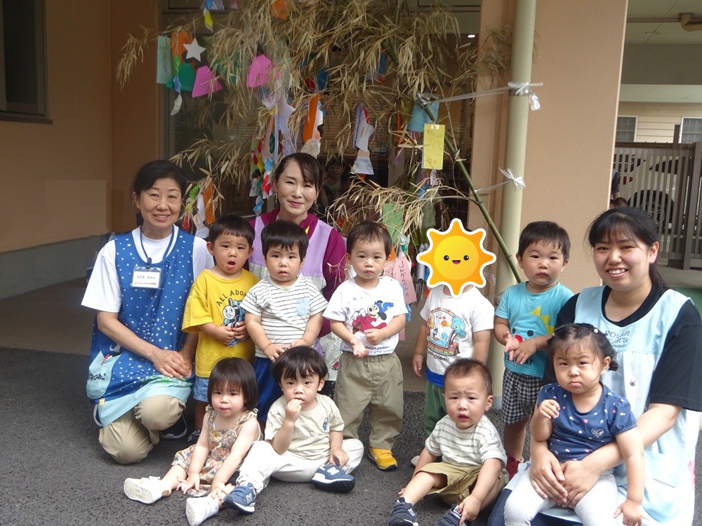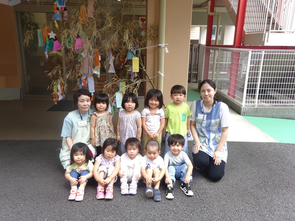 短冊に願いごとを書いて、親子で笹の葉に飾ります。