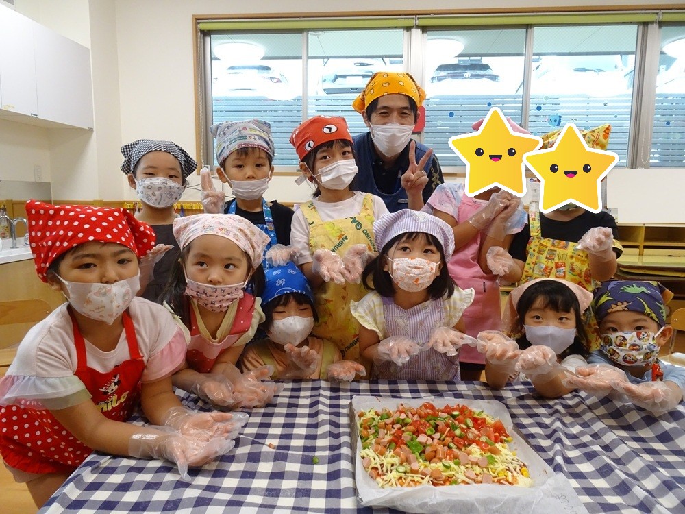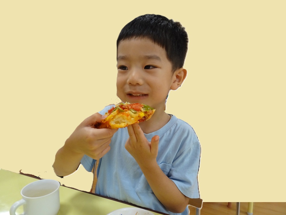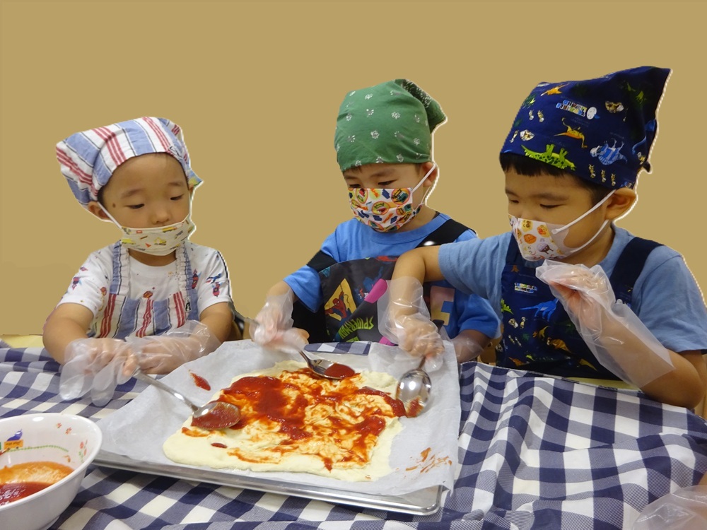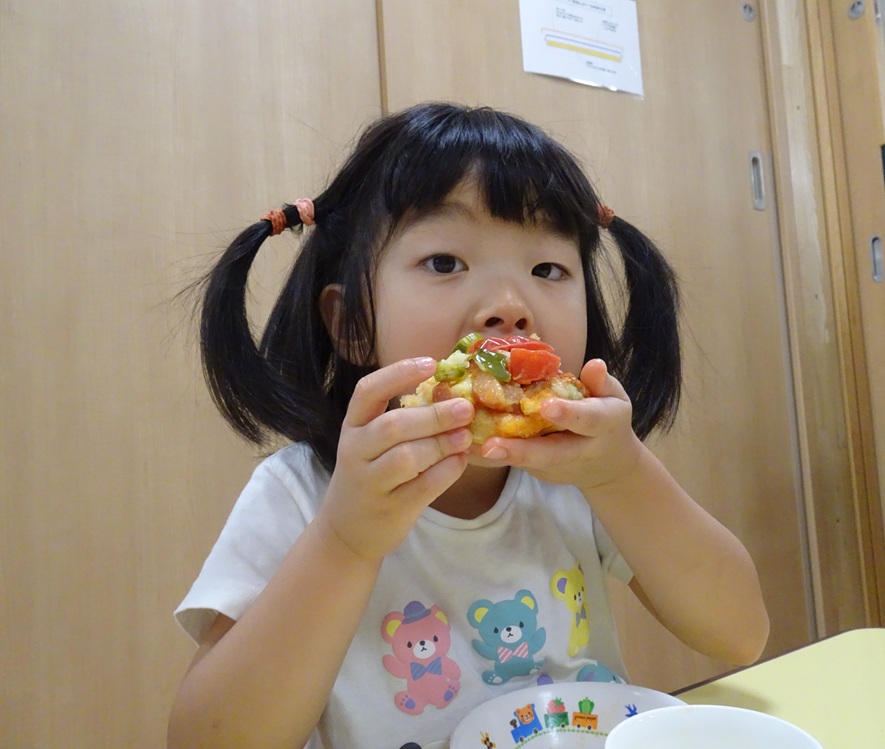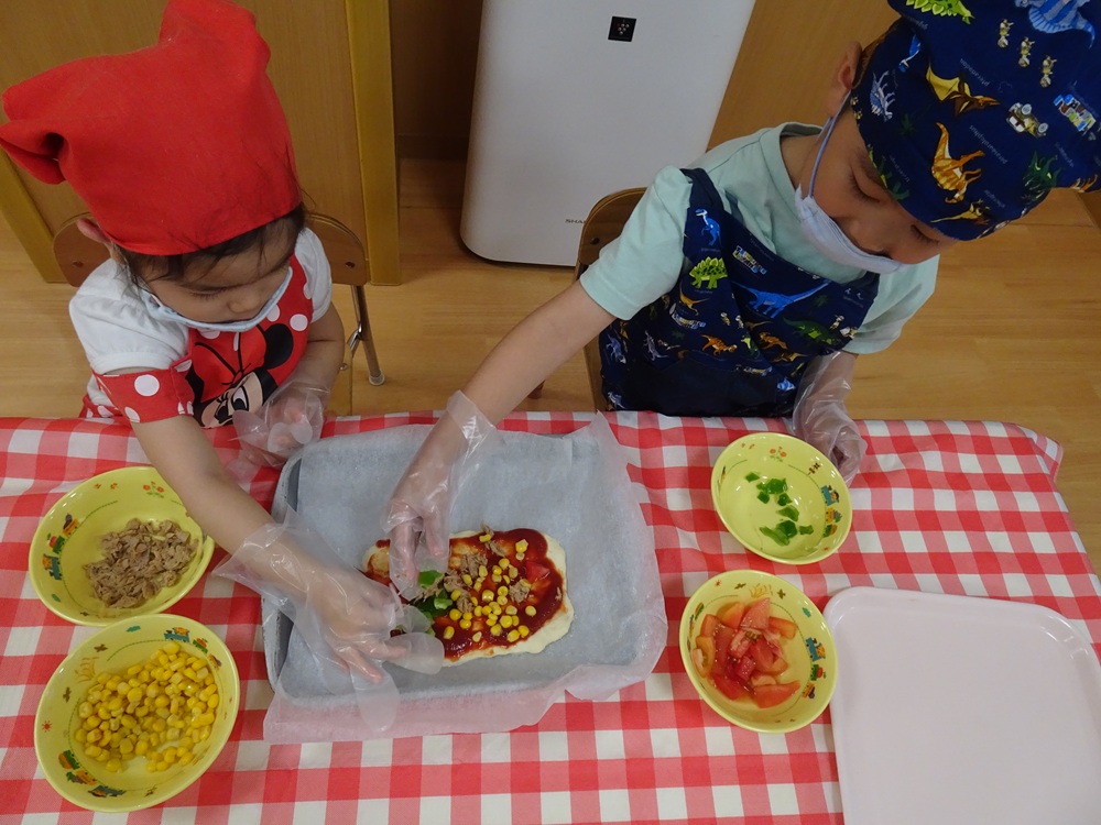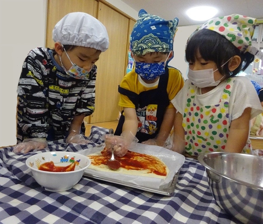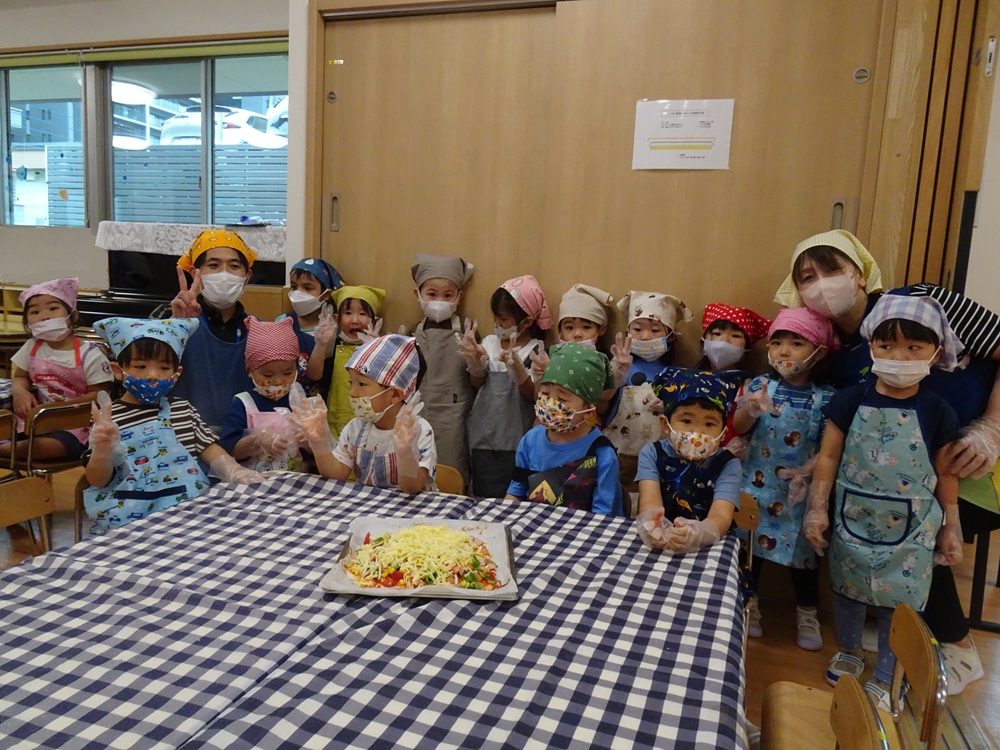 2025年8月8日 / 最終更新日 : 2026年4月3日 kashiwabara 食育活動 ピザ作り ピザの野菜は、幼児クラスが育てた夏野菜です。 おひさま組は包丁も上手に使えます。 子ども達で相談しながらピザのトッピングをします。 おいしそうですね。