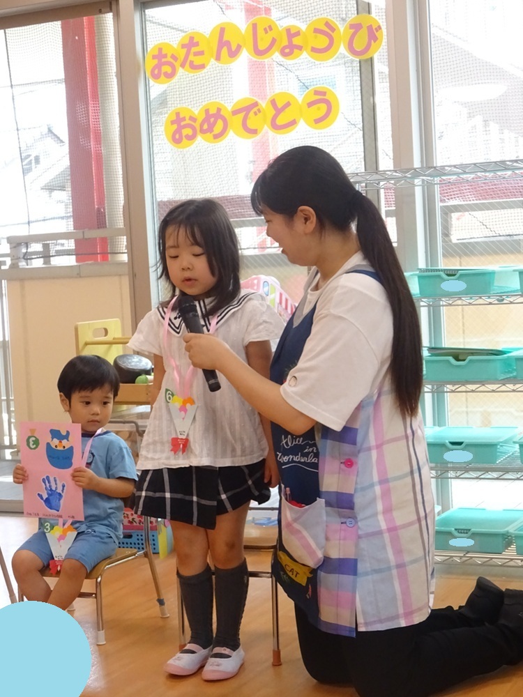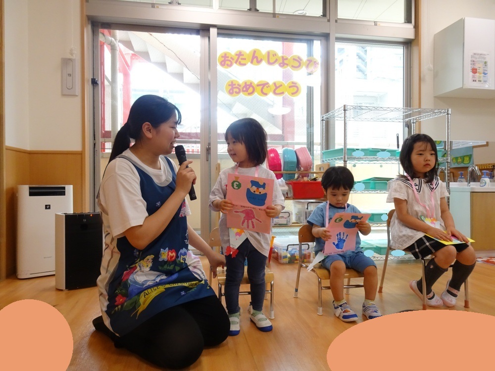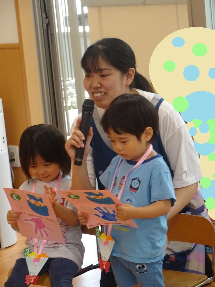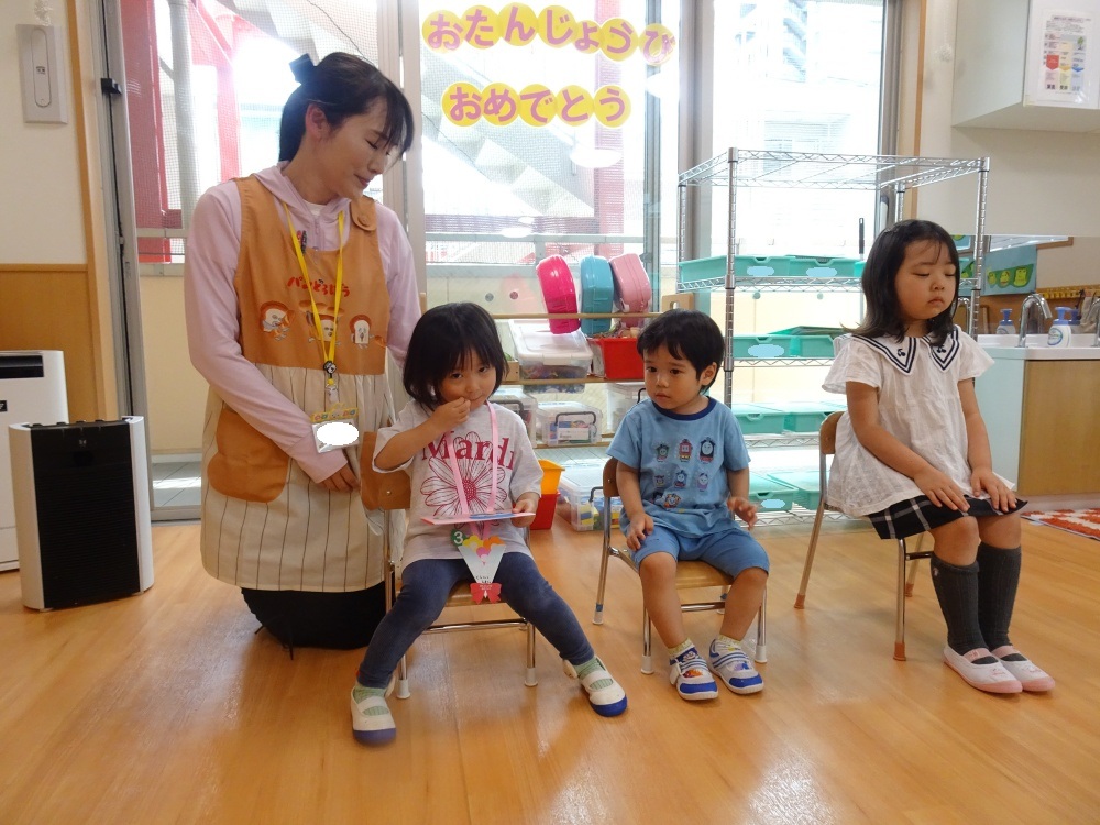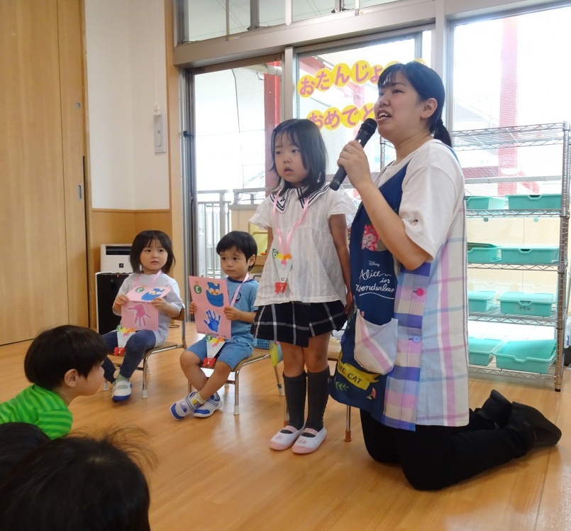 2025年12月8日 / 最終更新日 : 2025年12月27日 kashiwabara 5月 お誕生会 誕生カードとメダルをプレゼントしてもらいます。 どんなカードとメダルか、子ども達は興味津々です。 インタビューでは、皆の前で大きな声で答えています。 誕生会のお話し「何が見える?」を読むと、楽しそうに笑っていますね。