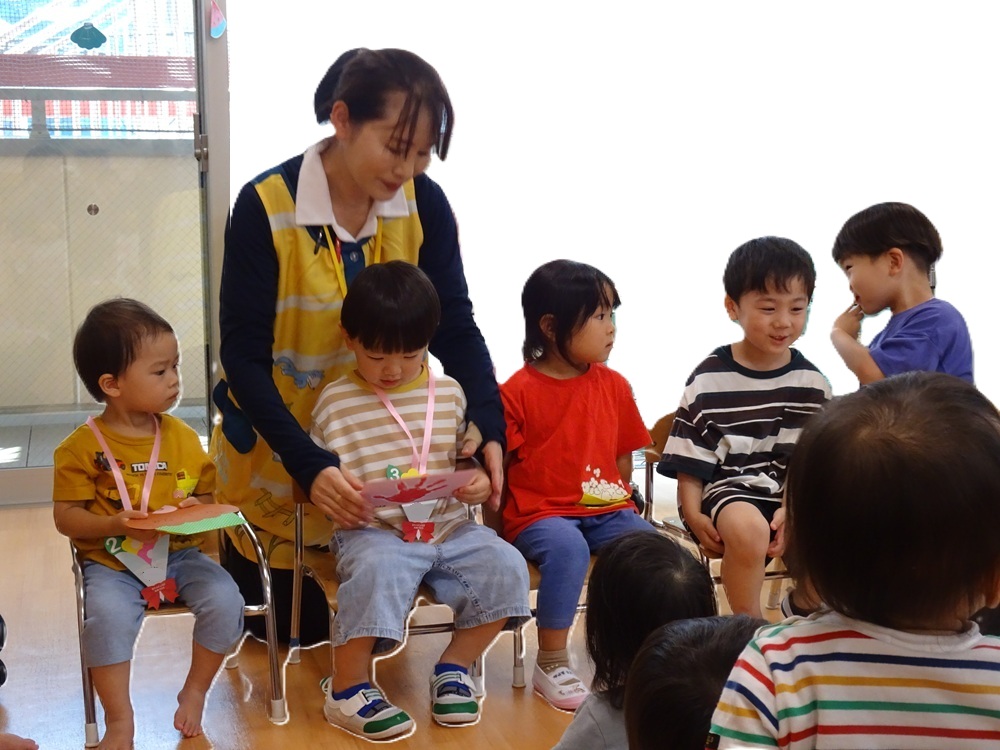 2025年7月31日 / 最終更新日 : 2026年2月26日 kashiwabara 7月 お誕生会 皆で7月生まれのお友だちのお祝いをします。 インタビューでは、自分の名前や年齢、将来の夢などしっかりと答えています。 先生からのプレゼント「オバケシアター」です。
